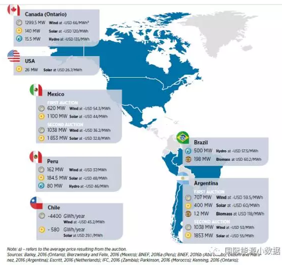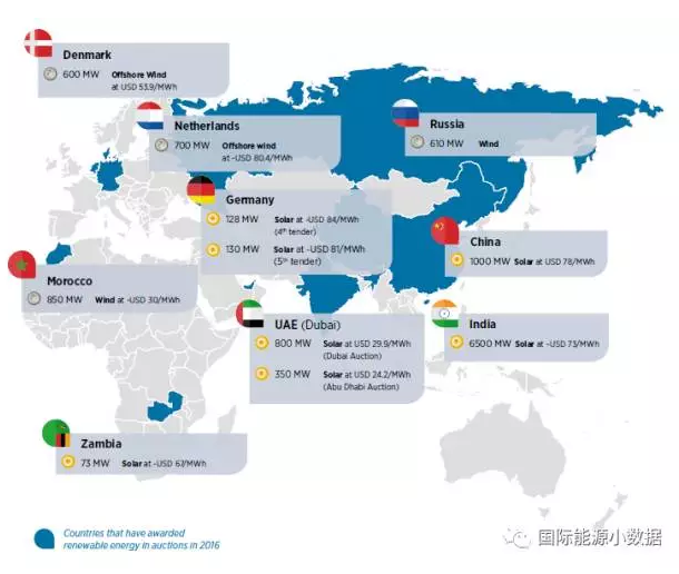 中國(guó)儲(chǔ)能網(wǎng)訊:國(guó)際可再生能源署(IRENA)日前發(fā)布報(bào)告,盤(pán)點(diǎn)2016年各國(guó)風(fēng)電、光伏的最低報(bào)價(jià)。