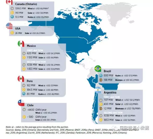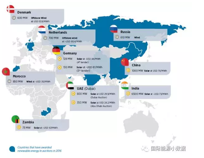 國際可再生能源署(IRENA)日前發(fā)布報告,盤點2016年各國風電、光伏的最低報價。