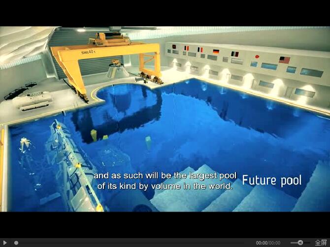 Blue Abyss公司將提供潛水器、無人機(jī)和商業(yè)潛水的培訓(xùn)和測(cè)試服務(wù),包括水池旁邊的起重機(jī)和開放的屋頂,這將使100多噸重的風(fēng)機(jī)設(shè)備被吊入水池成為可能。(視頻為Blue Abyss類似項(xiàng)目的宣傳片)