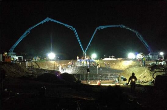 首臺(tái)風(fēng)機(jī)基礎(chǔ)混凝土于2017年1月28日(大年初一)晚上10:00在參建各方的共同見(jiàn)證下開(kāi)始澆筑,歷經(jīng)15個(gè)小時(shí),共澆筑755立方米混凝土。首臺(tái)風(fēng)機(jī)基礎(chǔ)混凝土澆筑的圓滿(mǎn)完成, 為我院2017年獻(xiàn)上了一份新年賀禮,也為項(xiàng)目后續(xù)各項(xiàng)工作的順利開(kāi)展奠定了堅(jiān)實(shí)的基礎(chǔ)。