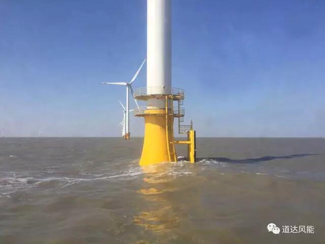 2016年12月31日,一步式風(fēng)機安裝船“道達(dá)號”裝載世界首臺海上風(fēng)機復(fù)合筒型基礎(chǔ)及塔筒從道達(dá)風(fēng)能的江蘇通州灣示范區(qū)基地出發(fā),完成了海上背負(fù)式氣浮運輸?shù)母黜棇崪y檢測,經(jīng)歷了寒潮惡劣氣候工況考驗后,于2017年1月13日在三峽新能源響水海上風(fēng)電場順利安裝到位,安裝垂直度達(dá)到千分之一,超過設(shè)計要求。此次試驗成功標(biāo)志著該技術(shù)通過驗證、施工工藝可行,將順利進入批量試制。