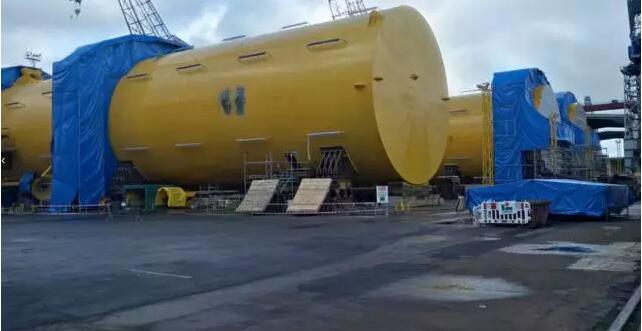 該風(fēng)電場5臺6MW的風(fēng)機安裝在Spar式基礎(chǔ)上并通過錨鏈固定在海床。風(fēng)電場占地面積約4平方公里,所處海域平均風(fēng)速約每秒10米。浮動基礎(chǔ)的重量約為3,200t,包括超過1000t的高密度混凝土。