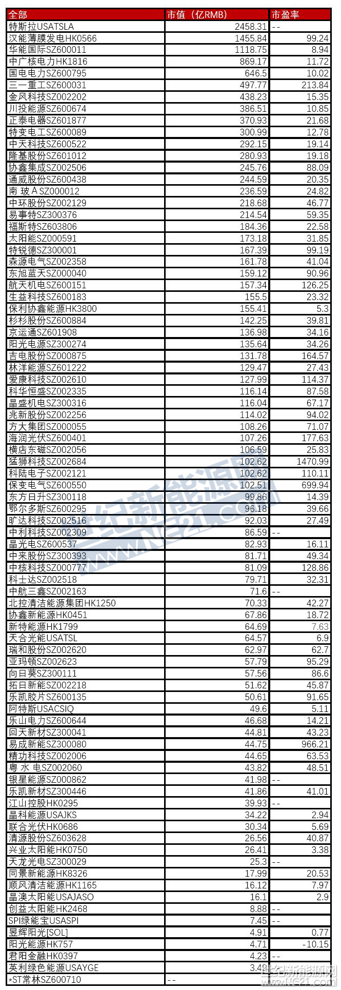 中國儲(chǔ)能網(wǎng)訊:全球80家光伏相關(guān)上市企業(yè)2016市值排名