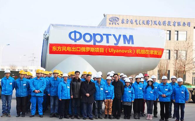 中國儲能網訊:2017年1月11日,東方 電氣風電有限公司(以下簡稱“東方風電”)在天津基地(東方 電氣天津風電科技有限公司)隆重舉行俄羅斯烏里楊諾夫斯克(Ulyanovsk)項目發(fā)運儀式,一臺臺直驅DF2.5MW-110機組好似“新嫁娘”,著上DEC的盛裝,即將發(fā)往港口,“中國造”風電機組2017年將旋轉在美麗的俄羅斯上空,為俄提供源源不斷的清潔能源。