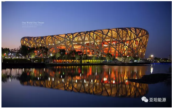 在“鳥(niǎo)巢”的12個(gè)主通道上方,安裝了總裝機(jī)容量130千瓦的太陽(yáng)能光伏發(fā)電系統(tǒng)。雖然整體裝機(jī)量并不是很高,但是在2003年之前的設(shè)計(jì)規(guī)劃中就已經(jīng)將光伏發(fā)電運(yùn)用到體育場(chǎng)的設(shè)計(jì)建設(shè)中,這在國(guó)內(nèi)已經(jīng)屬于比較超前的運(yùn)用,而鳥(niǎo)巢的太陽(yáng)能光伏發(fā)電系統(tǒng)產(chǎn)生的電力將直接并入國(guó)家體育場(chǎng)的電力供應(yīng)系統(tǒng),對(duì)奧運(yùn)場(chǎng)館的電力供應(yīng)起到良好的補(bǔ)充的作用。