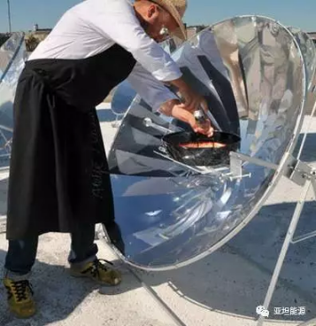 這個(gè)與眾不同的餐廳設(shè)在陽(yáng)光充足的室外,十多個(gè)輕便的太陽(yáng)能灶是露天廚房的唯一能源。廚師們戴著墨鏡在眾多太陽(yáng)能灶旁忙碌地工作著。他們將土豆切成塊放入鍋中,半小時(shí)后土豆就被煮熟了。廚師們隨時(shí)調(diào)整著太陽(yáng)能灶的方向,使它能有效地采集到最強(qiáng)的太陽(yáng)能。烹調(diào)大師梅拉斯涅米親自掌勺,精心烹飪自己的拿手好菜。