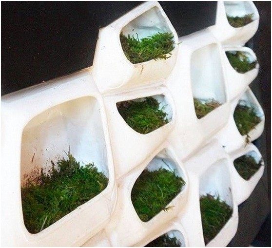 西班牙加泰羅尼亞高級(jí)建筑學(xué)院的學(xué)生Elena Mitrofanova提出一項(xiàng)以苔蘚為介質(zhì)的光伏發(fā)電系統(tǒng),直觀看來(lái),是一組種植苔蘚的立面中空模塊化墻磚。