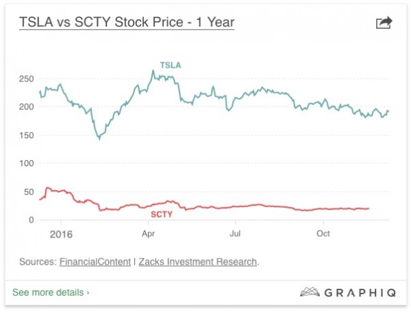 特斯拉和SolarCity的股價走勢對比