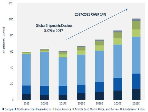 長期來看,GTM Research預(yù)測,到2021年光伏逆變器出貨量將超過100MW,中國市場仍將領(lǐng)先,但份額預(yù)計下降。中東和東南亞等新興市場將成為在2016年至2021年間增長最快的區(qū)域。