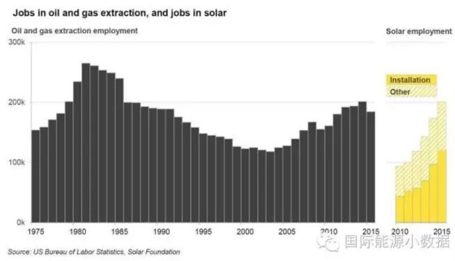 中國(guó)儲(chǔ)能網(wǎng)訊:根據(jù)美國(guó)勞工部和太陽(yáng)能基金會(huì)的數(shù)據(jù),2015年美國(guó)太陽(yáng)能(主要是光伏)領(lǐng)域就業(yè)人數(shù)達(dá)到20萬(wàn)人,超過(guò)了油氣上游(開采)企業(yè)的就業(yè)人數(shù)。而在光伏就業(yè)崗位中,超過(guò)大約60%從事光伏安裝工作。