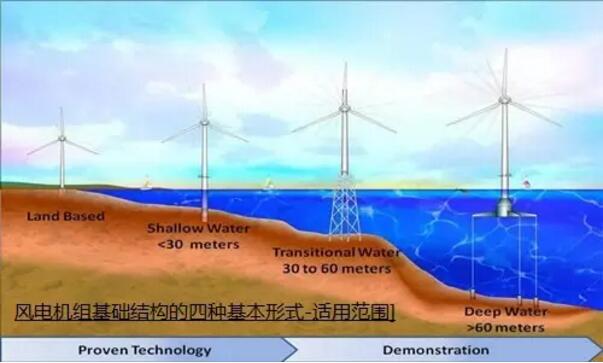? 浮式基礎(chǔ)—該基礎(chǔ)結(jié)構(gòu)適用于>60m的深水域,由于其不穩(wěn)定,意味著僅能應(yīng)用于海浪較低的情況。聽說目前最牛的可以在30米水深就能用浮式的。不過沒有工程實(shí)例。