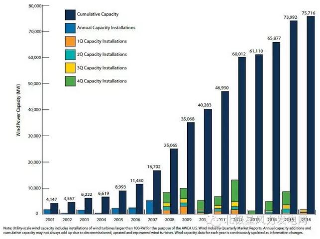 美國第三季度風(fēng)電裝機(jī)895MW,前三季度累積裝機(jī)1725MW;美國風(fēng)電總裝機(jī)達(dá)到75716MW,運(yùn)行風(fēng)機(jī)超過49000臺。
