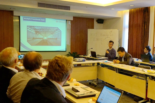 Jensen等6位來自丹麥技術(shù)大學(xué)的專家介紹了DTU的海上風(fēng)機(jī)研究進(jìn)展,包括多種類型風(fēng)機(jī)的風(fēng)場布局優(yōu)化以及風(fēng)機(jī)智能葉片的研究。王同光帶領(lǐng)的團(tuán)隊介紹了玻爾茲曼方法在航空聲學(xué)領(lǐng)域的應(yīng)用以及考慮大氣邊界層效應(yīng)的風(fēng)機(jī)尾跡的數(shù)值模擬方法。來自金風(fēng)科技的風(fēng)機(jī)研發(fā)專家介紹了他們在風(fēng)機(jī)設(shè)計及工業(yè)生產(chǎn)中的進(jìn)展,并提出了實際工程中遇到的難點,希望通過與上海交大等研究機(jī)構(gòu)加強合作,共同解決風(fēng)機(jī)研發(fā)中的工程應(yīng)用問題。