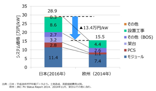 日本的系統(tǒng)成本為歐洲的2倍(出處:經(jīng)濟(jì)產(chǎn)業(yè)?。?