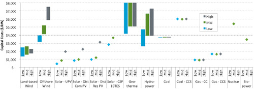 圖2:“2016 Annual Technology Baseline”各類(lèi)電源的設(shè)備投資額(2030年)(出處: 國(guó)家可再生能源實(shí)驗(yàn)室)