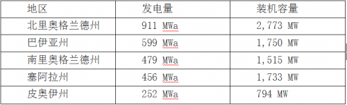中國儲能網(wǎng)訊:2016年上半年巴西風(fēng)電發(fā)電量達(dá)到9330MW,年增長率為55%。北里奧格蘭德州風(fēng)電裝機(jī)量以及發(fā)電量都是最高的,風(fēng)電發(fā)電量達(dá)到了911MW,增長了40%。巴西各個州風(fēng)電裝機(jī)容量及發(fā)電量詳情見下表: