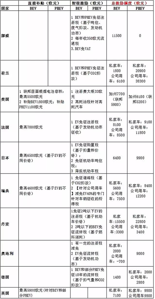 綜觀各國的財稅激勵政策,以及補貼政策、稅收減免以及燃油節(jié)約成本帶來的總的激勵額度: