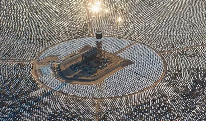 正因如此,光熱日益成為歐美各國(guó)青睞的未來(lái)能源產(chǎn)業(yè)。眼下,美國(guó)和西班牙是這個(gè)產(chǎn)業(yè)的領(lǐng)頭羊。截至2015年,這兩國(guó)占據(jù)著全球最大十家光熱電站的前九家,另外還有一家在南非。而隨著今年2月美國(guó)內(nèi)華達(dá)州裝機(jī)110MW的新月沙丘塔式熔鹽光熱電站正式并網(wǎng)發(fā)電,這兩國(guó)便壟斷了全球十大光熱電站。