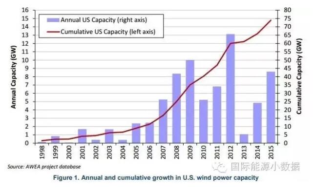 中國儲能網(wǎng)訊:根據(jù)美國勞倫斯伯克利國家實驗室最近發(fā)布“風(fēng)電技術(shù)市場報告”,2015年美國風(fēng)電投資達到145億美元,新增裝機容量8.6吉瓦,占2015年美國新增電力裝機容量的41%。美國風(fēng)電總裝機達到74吉瓦,比2014年增加12%。