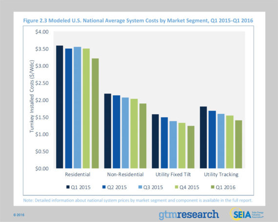 根據(jù)美國能源信息管理局數(shù)據(jù),今年一季度,美國住宅式屋頂太陽能電力系統(tǒng)的平均安裝成本下降至3.21美元/Wdc。