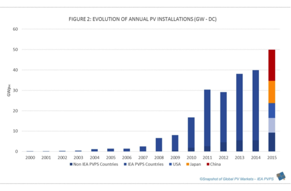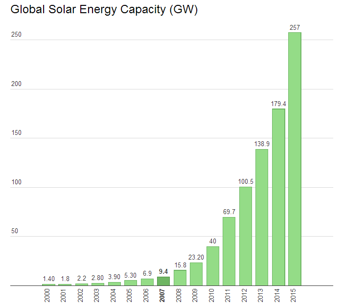 整體而言,2009-2015年,世界太陽能裝機容量增長了10倍之多,2002-2015年,世界太陽能裝機容量更是增長了100倍以上。預計到2025年,全球太陽能裝機容量將超過756吉瓦。
