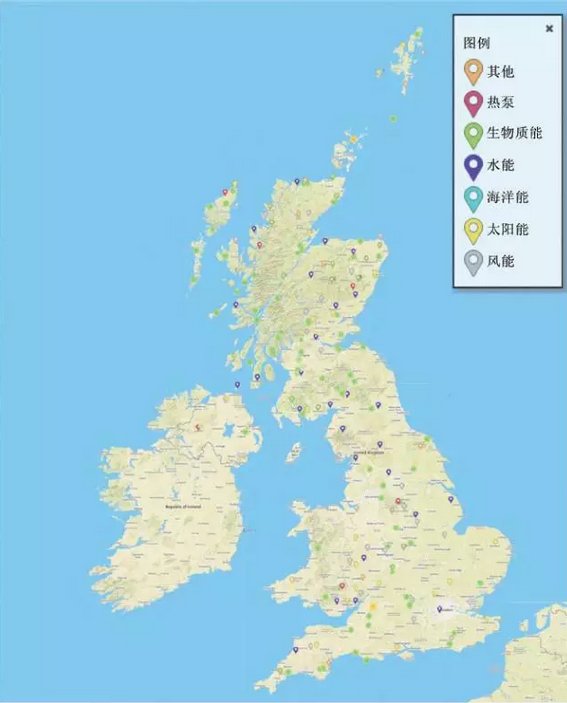 圖1 英國社區(qū)能源項目分布地圖(截至2016年3月)