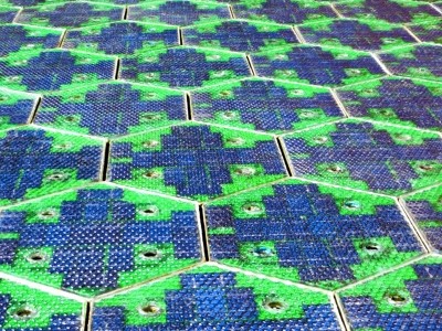 經(jīng)過不懈努力,布魯索夫婦發(fā)明出一種正六邊形的太陽能電池板(Solar Roadway),其表面是一種超耐磨的特殊玻璃,承重最高達(dá)125噸,能保證汽車的安全行駛。同時,太陽能電池板的最底層使用的是回收塑料顆粒,綠色環(huán)保。太陽能電池板被發(fā)明出來后,布魯索夫婦就在自己家的后院開始了鋪路測試,并打造出一個模擬停車場。