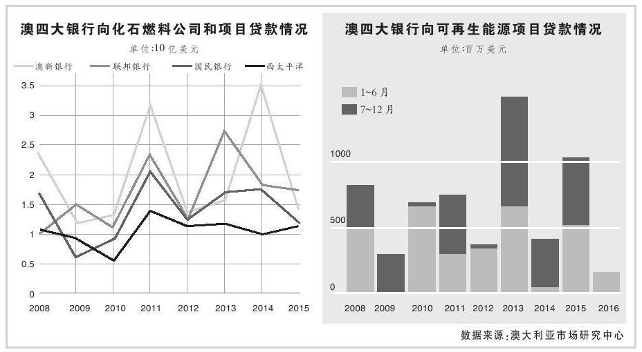 據(jù)澳大利亞銀行公布的數(shù)據(jù)顯示,今年到目前為止,澳大利亞聯(lián)邦銀行(澳大利亞第一大商業(yè)銀行)和澳新銀行沒有任何與可再生能源項目相關的融資交易。而從澳大利亞市場研究中心過去公布的數(shù)據(jù)了解到,2015年,澳大利亞四大銀行向澳大利亞化石燃料產(chǎn)業(yè)共借款55億美元。這相當于四家銀行自2008年以來向可再生能源產(chǎn)業(yè)借款總額的6倍!