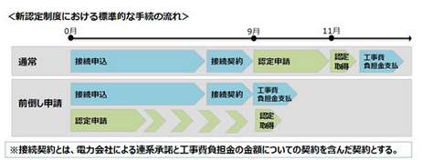 除此之外,在新認(rèn)證制度的申請(qǐng)手續(xù)方面規(guī)定,為了加快新認(rèn)證制度的申請(qǐng)流程,無(wú)論有沒有簽訂并網(wǎng)協(xié)議,都可以提前申請(qǐng)認(rèn)證。還有并網(wǎng)協(xié)議附帶的工程費(fèi)負(fù)擔(dān)金向電力公司的支付期限,原則上是簽訂協(xié)議之后的1個(gè)月內(nèi)。