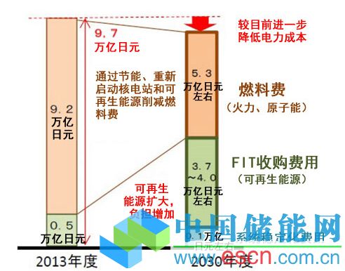 在能源結(jié)構(gòu)的討論中,將可再生能源的收購費(fèi)用上限設(shè)定為3.7~4萬億日元(出處:經(jīng)濟(jì)產(chǎn)業(yè)?。?