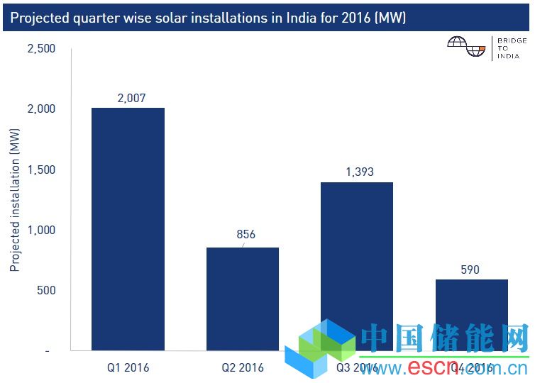 印度統(tǒng)計(jì),2015年的公共事業(yè)級(jí)太陽(yáng)能新增裝機(jī)量為2GW,而2016年整年預(yù)計(jì)將有4.8GW的裝機(jī)量。其中大部分將于今年第一季裝設(shè)、啟用。