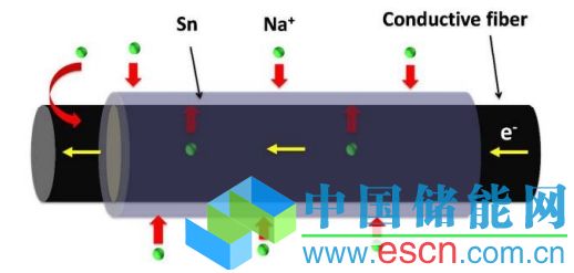他們使用黃松木薄片進(jìn)行測(cè)試。先用奈米碳管覆蓋在薄片之上以改善其傳導(dǎo)性,接著再在每塊薄片上加上一層錫;完成之后,將薄片放入含有鈉離子的電解液中,進(jìn)行400次循環(huán)的充放電??刂平M則是以銅薄片制成的類(lèi)似電池。
