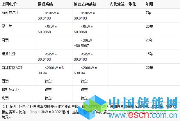 AUD$0.8/kWh的補貼率將從2012年7月10日開始實施,并將在2013年7月1日接受審查。該補貼機制將于2014年7月1日結束。