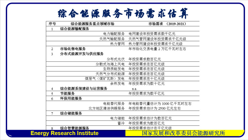 最近國家還發(fā)布了分布式發(fā)電的市場(chǎng)化交易試點(diǎn),各地申報(bào)很積極,好像是報(bào)了兩千多萬千瓦,因?yàn)橄{問題,沒有批那么多,這個(gè)也是跟綜合能源服務(wù)相關(guān)。