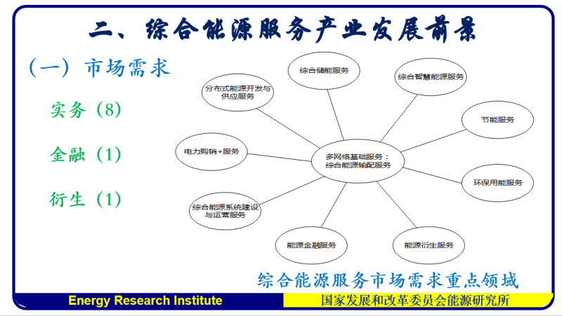 今年5月,發(fā)改委發(fā)了《國家發(fā)改委、科技部關(guān)于構(gòu)建市場(chǎng)導(dǎo)向的綠色技術(shù)創(chuàng)新體系的指導(dǎo)意見》,搞十百千工程,將來這個(gè)十百千,是綜合能源服務(wù)的提供者。