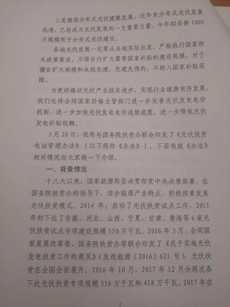 今年將啟動(dòng)新一期光伏應(yīng)用領(lǐng)跑基地建設(shè)和下達(dá)“十三五”第二批光伏扶貧計(jì)劃。今后扶貧電站不再建集中式,企業(yè)不能投資入股。光伏扶貧電站優(yōu)先納入可再生能源補(bǔ)助目錄,原則上年度補(bǔ)助資金于次年一季度前發(fā)放。并明確光伏扶貧只是產(chǎn)業(yè)扶貧的眾多方式之一,不是唯一方式,不能“一光了之”。