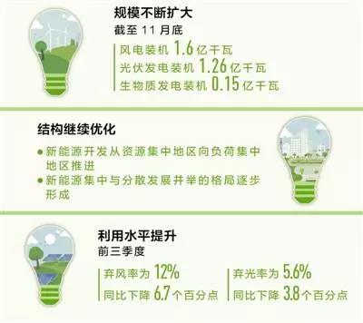 利用水平提升。棄風(fēng)棄光一直是新能源發(fā)展的“老大難”。今年前三季度,棄風(fēng)、棄光率分別為12%和5.6%,同比分別下降了6.7個(gè)百分點(diǎn)和3.8個(gè)百分點(diǎn),新疆、甘肅等重點(diǎn)地區(qū)棄風(fēng)率分別下降了12.1個(gè)百分點(diǎn)和10.5個(gè)百分點(diǎn)。國(guó)務(wù)院發(fā)展研究中心資源與環(huán)境政策研究所研究員郭焦鋒認(rèn)為,新能源技術(shù)也在不斷提升,“我國(guó)光伏發(fā)電效率原來(lái)大概在14%—16%,現(xiàn)在能達(dá)到16%—18%,好一點(diǎn)的甚至能達(dá)到20%左右?!?