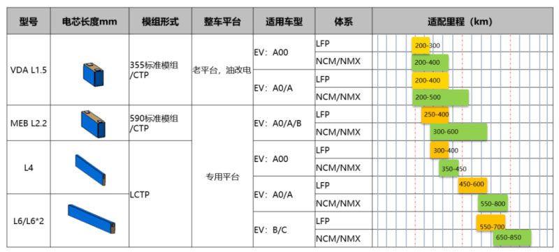 圖為蜂巢能源多種材料體系L6疊片電池覆蓋車(chē)型