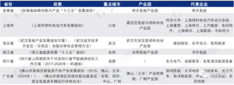 到2020年,以能源形式利用的氫氣產(chǎn)能規(guī)模將達到720億m3;加氫站數(shù)量達到100座;燃料電池車輛達到100000輛;氫能軌道交通車輛達到50列;行業(yè)總產(chǎn)值達到3000億元。到2030年,氫能產(chǎn)業(yè)將成為我國新的經(jīng)濟增長點和新能源戰(zhàn)略的重要組成部分,產(chǎn)業(yè)產(chǎn)值將突破10000億元;加氫站數(shù)量達到1000座,燃料電池車輛保有量達到 200萬輛。此外,國家和地方也出臺了很多相關(guān)政策,以支持氫能產(chǎn)業(yè)的發(fā)展: