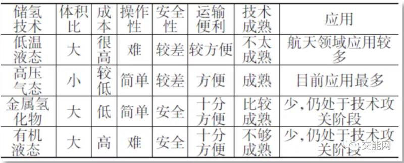 綜上四種儲氫方法的比較如下表: