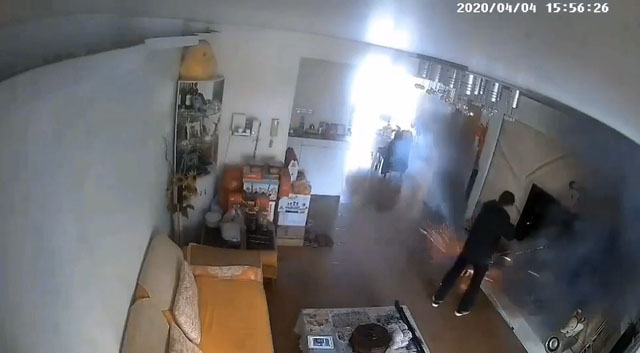 這段居民家中的監(jiān)控視頻顯示了電動(dòng)車電池爆炸的駭人場(chǎng)面。一名男子在家中沙發(fā)坐著,電動(dòng)車電池在其對(duì)面的電視柜旁充電。視頻的時(shí)間來到15點(diǎn)56分21秒時(shí),充電的電池啪的一聲炸出了黑煙,男子趕忙起身上前查看,不想這時(shí)電池火花四濺,黑煙噴出,并伴隨著類似鞭炮的炸響。15點(diǎn)56分27秒,僅6秒后,一聲巨大的轟隆響,電池爆炸,視頻畫面被通紅的火光充滿。