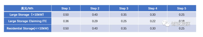最初是按照容量“W”進行初投資補貼,對單獨的先進儲能系統(tǒng)按照2美元/W的標準補貼,對于與其他技術(shù)結(jié)合的儲能進行100%(小于30kW)或50%的前期補貼。之后,將補貼標準逐步降低,2016年降至1.31美元/W。