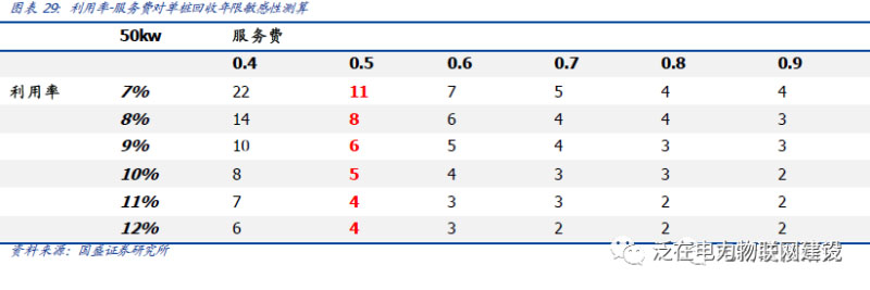 若保持0.5元服務費不變,當充電樁利用率從7%提升至12%時,單樁投資回收年限會從11年縮短至4年,明顯小于設備可使用的年份上限。
