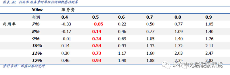 同時以50kw快充樁為例,針對利用率與服務費做出敏感性分析,