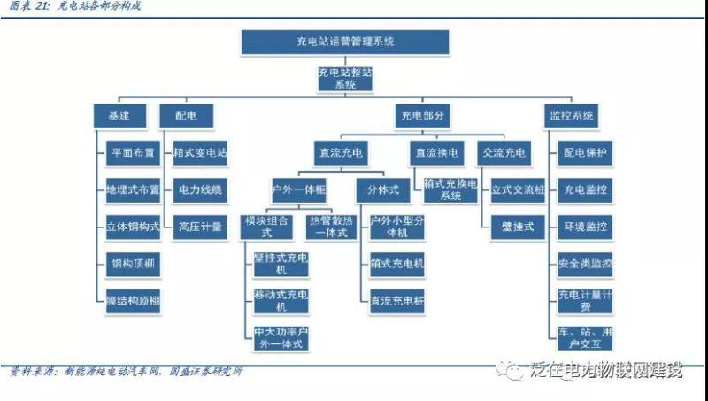 對于具備一定規(guī)模的充電站,整體投資包含四個子模塊:變電和配電系統(tǒng)、充電系統(tǒng)、充電站監(jiān)控系統(tǒng)及基建系統(tǒng);