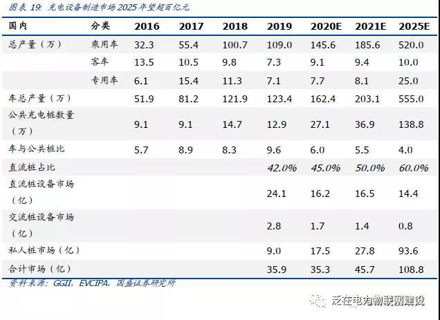 基于此,假設公共樁領域直流充電樁占比望持續(xù)攀升,2025年公共樁中直流樁占比望升至60%,成為主流;私人樁領域皆為交流慢充樁,并且隨車建樁的比例望從2019年不足30%,升至2025年60%。