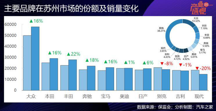 鄭州汽車市場上大眾一家獨大,日系兩田和吉利加在一起才頂一個大眾,吉利雖排在品牌銷量第四位,但去年在鄭州市場進一步受到大眾和日系兩田的擠壓,銷量下滑13%,榮威、奔馳和奧迪去年在鄭州的銷量也都大幅增長,可以對照的是:鄭州新車銷量去年下降了7%。