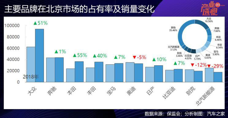 品牌檔次差異方面,上海人更講究經濟實惠,海外品牌的占有率為53%,高于北京市場的48%。帝都更愛豪華品牌,29%的比重高于魔都的27%。不過,海外品牌去年在上海市場微漲0.6%,在北京市場則大幅增長21%,尤其是,大眾、本田和豐田去年在北京市場都出現了大幅增長,漲幅分別達51%、55%和40%。