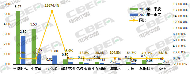 圖3:2020年一季度國內動力電池裝機量TOP10的企業(yè)分析