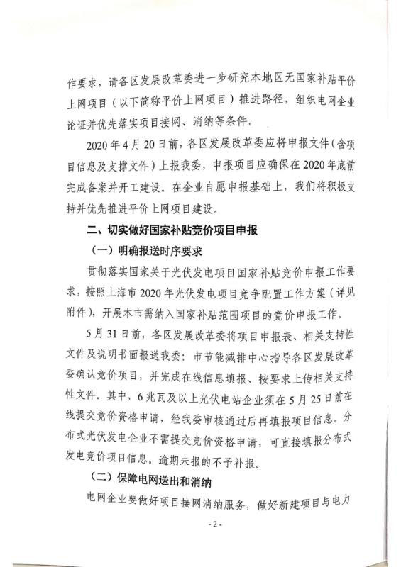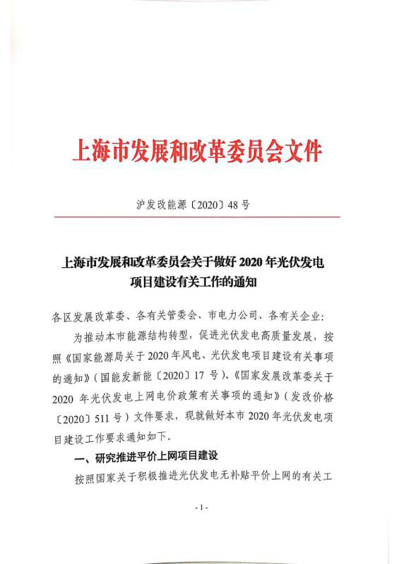 近日,上海市發(fā)改委下發(fā)《關(guān)于做好2020年光伏發(fā)電項(xiàng)目建設(shè)有關(guān)工作的通知》(以下簡稱“《通知》”,要求平價光伏項(xiàng)目4月20日前報送,競價光伏項(xiàng)目5月31日前報送。